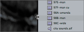 | Final Cut Pro will store up to 40 track layouts. To choose another of your saved layouts, one that isn't listed in the shortcut menu, click the Track Layout pop-up menu again and choose Restore Track Layout. A window will appear listing all of your saved layouts. You can choose the track layout you want from this list. |