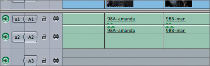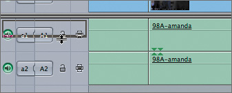 | 2. | To make all the audio tracks this same height, hold down the Option key and resize the A2 track to the shortest height possible.