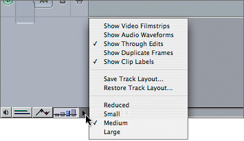 | 5. | Toggle through the Track Height controls to restore the tracks to a default height, and then click the Track Layout pop-up menu again.