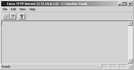 Figure 7-41. Cisco TFTP Server  | Step 5. | Jimmy sends the command to the web server asking it to get a copy of NetCat and save it to its own hard drive. Following is the syntax used to accomplish this: