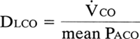 In the single-breath method, the patient inhales a gas mixture containing a known quantity of carbon monoxide and helium. Helium is relatively insoluble and is used to calculate the lung volume and initial Paco. Mean Paco is obtained from the calculated initial Paco and the measured end-tidal Pco; the difference between them is used to calculate carbon monoxide uptake (Vco).