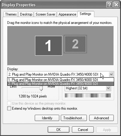 Figure 5a. Set up your dual-monitor display by choosing the second monitor in the display list box.