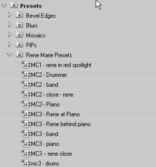 Figure 32b. Here's where the preset goes after you've saved it. A funky red spotlight at the Rene Marie concert forced me to apply varying levels of color correction depending upon camera (MC1, 2, or 3) and stage position. Without presets I'd still be working on it.