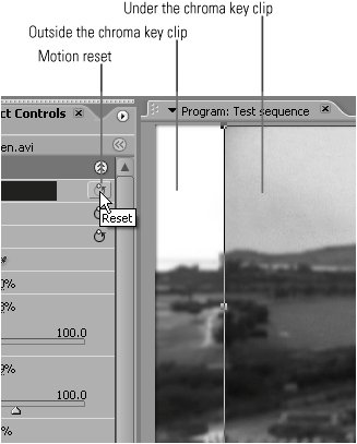 | 11. | Click the Motion Reset icon to shift the chroma key clip back into the original position.