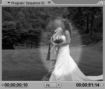 Note If you created your matte using the Premiere Pro titler on the first frame of the video, you shouldn't have to adjust the matte at the first keyframe. If you created it over a latter frame in the video, or in Photoshop, you may have to adjust the settings for the initial frame. | 6. | Drag the current-time indicator to the right until the shape no longer covers the targets in the background. In the example, at 10 frames in, the ellipse is too small (Figure 53b) and a bit too far forward.