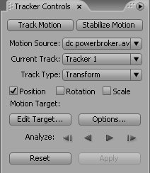 | 2. | In the Tracker Controls dialog box (Figure 55b), click the Motion Source drop-down menu and choose the file with the tracking data (dc powerbroker.avi).