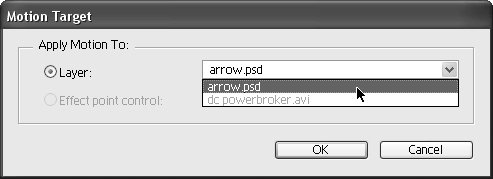 Figure 55c. Here's where you choose the layer to which you'll apply the tracking data.