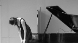 For example, Figure 70a is a frame of a pianist bowing after her performance. It's not the last frame in the video, but it's appropriate for the scrolling credits. Here's how to freeze that frame. Figure 70a. Here's the frame we want to freeze.  1. | Zoom in to the timeline with the Zoom tool until you can see each individual frame.
