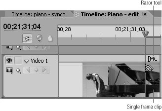 | | | 3. | Using the Razor tool, split the final frame from the rest of the clip (Figure 70b).