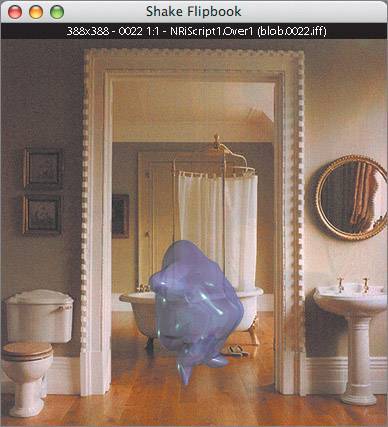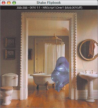 | This section demonstrates the different degrees to which the command line can be used, starting simply as a flipbook and gradually adding complexity up to a full-blown script. OK, I admit, this stuff is pretty boring, but somebody has got to explain it. Once you get past a certain point, your best bet is to move to the Shake graphical interface. We'll start by playing the computer-generated element, and progressively work it onto a composite. 1. | Type shake blob.#.iff t 146