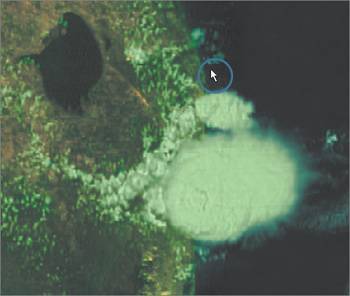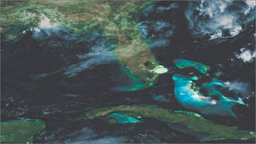 | 6. | Zoom in to the middle of Florida near the lake and the hurricane by pressing the + key repeatedly.