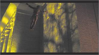 | 40. | Zoom in to the area above the stunt actor, and completely paint out the wires attached to him on every frame.