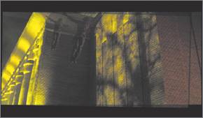 The wire2_final clip is an establishing shot for the scene used in the last paint lesson. It is also the finished shot for this exercise. The wire2 clip is what you will be painting. As in the closer shot, a large crane and wire are suspending a stunt actor, but the moving rig also casts a moving shadow on the adjacent building.