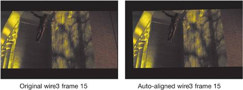 In addition, you can align a stationary clean plate with a moving image sequence when you are using images that almost completely overlap. For this exercise, you'll use the AutoAlign node to create a clean plate that does not include the stunt actor or his wire.