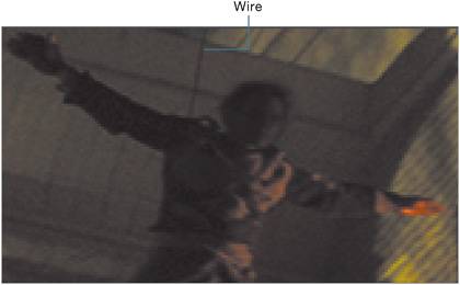 | 11. | Go to frame 1 and paint out the remainder of the wire connecting the stunt actor.