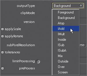 | 2. | Set the outputType pop-up to Background so that the foreground is not composited with the background.