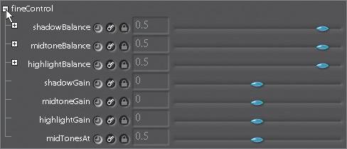 Raising the screenRange value increases the contrast in the mask, but adjusting it too high will result in the loss of fine detail. A second set of mask controls is located in the fineControl subtree. Raising or lowering the Gain parameters increases or decreases the mask in the shadow, mid-tone, or highlight areas.