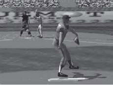 Animation improvements include adding umpire animations and involvement (motioning and speaking), having working and animated base coaches, filling the stadium with a variety of fans, having various home run celebrations, coming to bat rituals, and on-deck animations, having pitches without a long canned animation, and after a strikeout or a first base out, optionally throwing the ball around the infield. Improving the AI to compete with High Heat Baseball (intentional walks), having optional hitting and pitching cursors, and forcing base runners to go on a two outs and a full count.