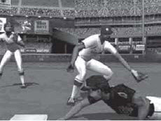 Interplay published VR Baseball, which was last published as Interplay Sports Baseball 2000. Microsoft’s offering is MS Baseball 2001 for Windows. EA Sports, which proclaimed “We are Sports,” has their studio 3DO and its head, Trip Hawkins, publishing High Heat Baseball 2002 for Windows, the PlayStation 2 (High Heat Baseball 2003 for PSX 2 E), and Gameboy Advance (both in 2002 and 2003 versions). EA’s predecessor baseball offering was Triple Play Baseball. Acclaim has their All Star Baseball for 2002 and 2003 for the Game Cube, PSX 2, and Microsoft’s Xbox.