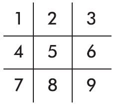 In Tic-Tac-Toe, the player who goes first (say, “X”) can choose one of nine spaces to mark with an “X” (as in the above diagram spaces one to nine). Then “O” has a turn and can mark any of the remaining eight empty spaces. This gameplay continues until either player has won (three connecting marks) or all of the spaces are filled (no player wins). In mathematics, we call this process “factorial,” and in Tic-Tac-Toe it is 9! or nine factorial (9 * 8 * 7 * 6 * 5 * 4 *3* 2 * 1).