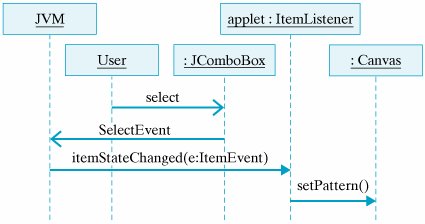 Figure 12.30 illustrates the sequence of events that occurs when an item is selected from a JComboBox. The complete implementation for the applet is given in Figure 12.31.