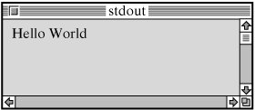 On a Macintosh system or within an IDE, neither of which typically has a command-line interface, you would select the compile and run commands from a menu. Once the code is compiled, the run command will cause the JVM to be loaded and the bytecode to be interpreted. The "HelloWorld!" output would appear in a text-based window that automatically pops up on your computer screen. In any case, regardless of the system you use, running the HelloWorld application program will cause the "HelloWorld" message to be displayed on a standard output device of some kind (Fig. 1.11).
