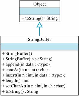 One advantage of the StringBuffer class is that there are several versions of its insert() and append() methods. These make it possible to insert any type of dataint, double, Object, and so oninto a StringBuffer. The method itself takes care of converting the data into a string for us.