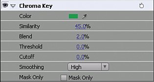 Troubleshooting a Greenscreen Project Seeing Grey and Feeling Blue Sometimes, no matter how well you thought you set up your green screen backdrop, or how well you thought you had the backdrop and your subject lit, when you get your clip into Premiere Elements and apply the Green Screen Key, what you see is mud. All you know is, the thing doesn't look like it's supposed to. Perhaps it's the color of your background. Maybe it's your lights (or lack of them). Maybe it's the fact that your greenscreen material has gotten a bit too wrinkled or you didn't quite stretch it (or iron it) enough this time. But no matter what the problem, there's a fix right in Premiere Elements. Chroma Key to the Rescue If you've applied the Green Screen Key as described in this chapter without satisfactory results, you can approach the problem from another angle. Try the Chroma Key instead. With the Chroma Key, you can choose the color by either selecting it from the background using an eyedropper tool or by picking it from a color swatch. The Chroma Key can be found among the other keys in the Video Effects list on the Effects and Transitions view on the Media panel. After you've applied the key, go to the Properties panel, click the triangle next to the Chroma Key, and then, select the eyedropper tool. With the eyedropper, click on a color in the background of the clip in the Monitor panel. The color swatch next to the eyedropper tool will now be the same color as the color you selected. Clicking on the color swatch next to the eyedropper brings up the Color Picker window. This is an alternative way to select your starting color for the Chroma Key. From the Color Picker window, you can either select a color by clicking on it or you can enter a numeric value. Adjust the Chroma Key to Eliminate the Green As you may notice the first time you use this effect, the Chroma Key at first does a rough cut, a kind of a wide sweep and removes a certain amount of the background. In order to remove the rest, you'll need to tweak the Chroma Key's controls. On the Properties panel, you can adjust the Similarity setting for the Chroma Key by dragging your mouse across the setting (or by typing in a value) until as much as possible of the background disappears. You can also tweak the controls to adjust the key until, hopefully, all of the background has been eliminated. Controls for the Chroma Key include Blend (how and to what degree it merges with the background), Threshold (the amount of shadows included in the selected color), and Cutoff (how dark or light the shadows are). (The green will disappear and reappear as you make adjustments.) Keep in mind that you can apply the Chroma Key as many times as necessary to completely eliminate all of the background color or colors in the clip. Non Red is the Right "Non" Color Premiere Elements has an another key that you can use to eliminate any final vestiges of green, especially the nefarious green "fringe" that sometimes remains around an actor after the green background has been removed. When you need to rid yourself of this pesky fringe, try the Non Red Effect. In the Properties panel, click the Defringing dropdown and choose Green. This should, in most cases, remove the green fringe. By the way, if your actor has a blue fringe from a blue background, select Blue instead.