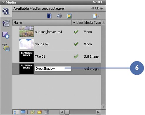 Create the Drop Shadow Double-click on the Drop Shadow clip on the Video 2 track to access the Titler.