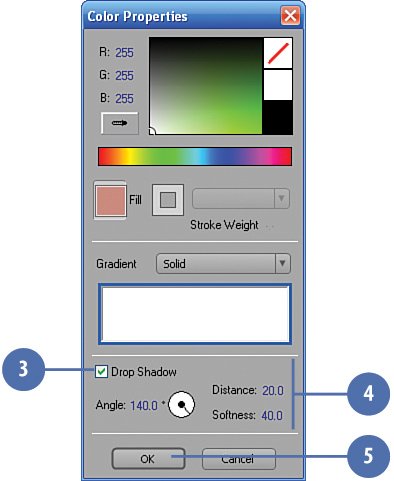 On the Color Properties dialog box, add a drop shadow to the text by clicking the Drop Shadow check box.