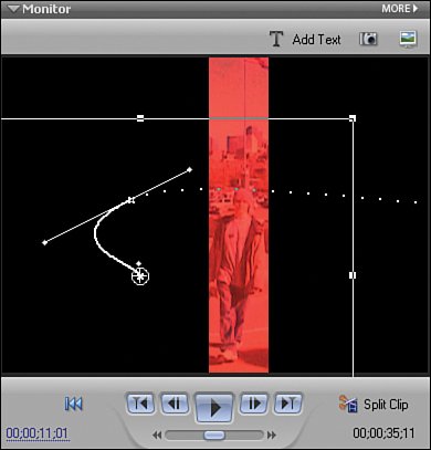 You can control the motion and timing of a clip using a combination of dragging the clip in the Monitor panel to define the motion, and setting keyframes and entering numeric values in the Properties panel to define the timing.  Controlling the Timing of a Clip In the preceding example, the speed at which the clip travels diagonally across the screen is uniform for the given duration of the clip. If we want to speed up or slow down how the clip moves at any point, we can add additional keyframes. How far apart or close together these keyframes are controls how fast or slow the clip plays.