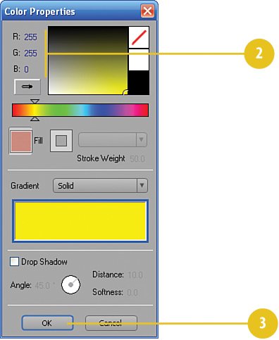 Color the text Your final step in creating your scrolling text (prior to animating the text and reshaping it) is to give it that gold color. To do so, click the Color Properties button.