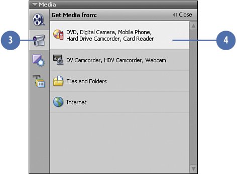 Click the Get Media from button on the Media panel to access the Get Media from view, if it's not already active.