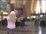 | The foreground clip, oneperson.avi, was filmed against a greenscreen. In order for the background clip of the fast-moving crowd to appear behind the actor is this project, we need to removeor "key out"the green background behind her. We'll do that using the Green Screen Key. Apply the Green Screen Key Click the Effects and Transitions button on the Media panel to switch to the Effects and Transitions view.