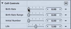 | 3. | On the Emitter tab in the Inspector, drag the Birth Rate slider to the left until the value is 0.00.