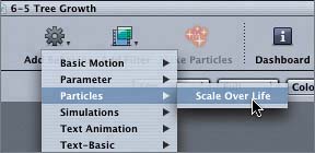 | 4. | On the toolbar, click the Add Behavior pop-up menu and choose Particles > Scale Over Life.