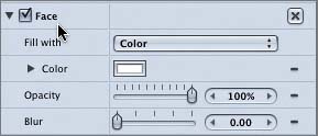 The Style pane offers four styles that you can apply to your text objects: Face, Outline, Glow, and Drop Shadow.