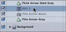 | 6. | Select the DAY 1 text object on the Timeline Layer list toward the bottom of the list.
