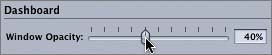 The Dashboard appears with an opacity of 40 percent. You can see the Dashboard opacity change as you drag the slider control.