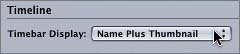 The default Timebar Display setting is Name Plus Thumbnail, which displays a small thumbnail image plus the object's name for each clip and layer in the Timeline.