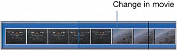 The Filmstrip setting represents the media in the project as a series of sequential thumbnails, which lets you see where changes occur in a movie object. This view may look cool and can be used as a reference for aligning clips and effects instead of having to use markers. However, it's also a RAM hog, so turn off the Filmstrip setting when you don't need it.