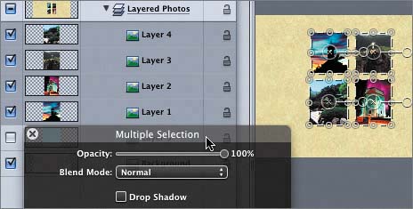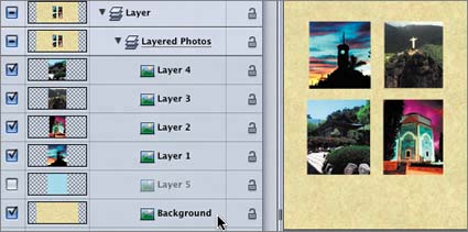 6. | In the Layer list, select Layer 4, which contains the last image; then Shift-click Layer 1 to select all four contiguous objects.