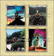 14. | Cmd-click one of the four images; then Shift-Cmd-click the remaining three images to select all four objects on the sublayer.