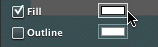 Now we'll use the Dashboard to change the circle's fill color. To change the fill color, you click the fill color well and select the color you want from the color wheel. By default, whenever you create a shape in Motion, the Fill box is checked and the fill color is white.