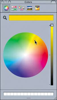 NOTE If your Colors window does not show the color wheel, select the wheel at the top left of the Colors window. If you do not see a wheel, click the button at the upper right of the Colors window to expand the window and reveal the color selection choices. | 4. | Drag the dot in the center of the color wheel to the upper right to turn your circle yellow.