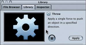 | 4. | Click the Throw behavior to view it in the preview area at the top of the Library window.