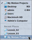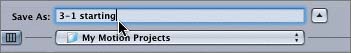 | 6. | Click the pop-up menu below the Save As field and choose My Motion Projects from the Recent Places list at the bottom of the menu.