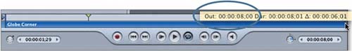 | 4. | Drag the right edge of the Globe Corner region in the mini-Timeline until the yellow tooltip shows that the Out point occurs at exactly 8 seconds (8;00).