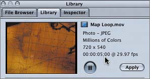 | 3. | Select the Map Loop.mov icon in the lower pane of the Library.