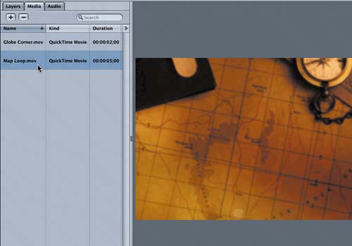 | 6. | Select the Map Loop.mov file on the Media tab.